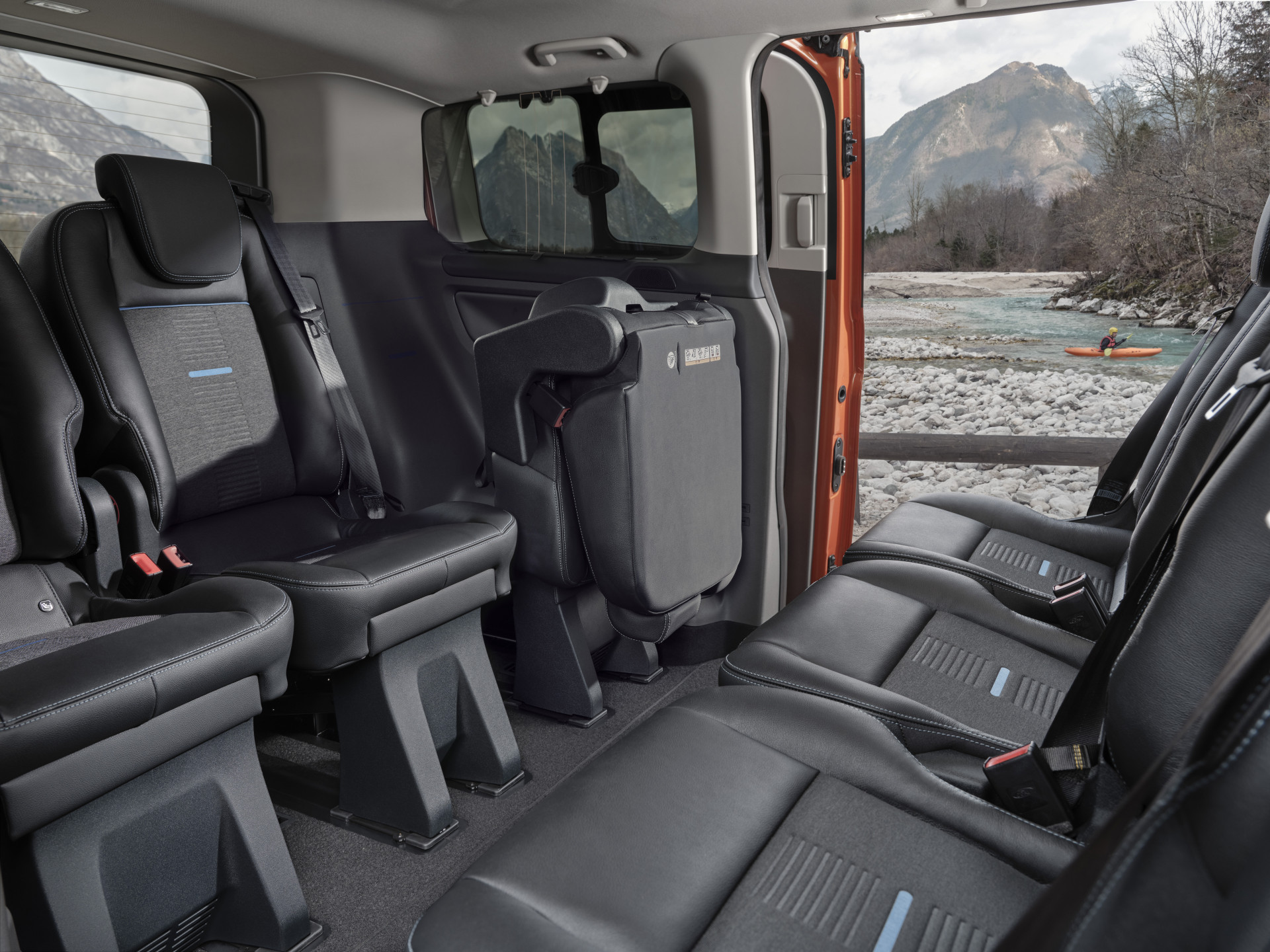 Le Ford Tourneo Custom est conçu pour accueillir confortablement jusqu’à 8 passagers. C’est le choix idéal pour les groupes plus grands, offrant à la fois confort et espace pour chacun.